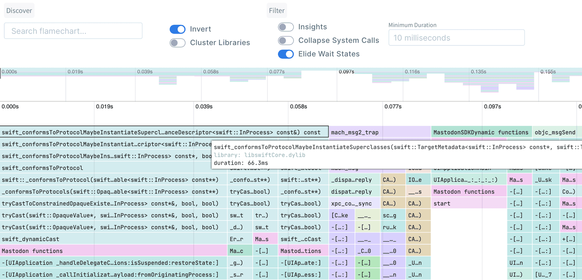Next, try launching the same app a second time and running ettrace to get the trace. This time conformance lookups